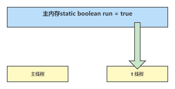 初始状态, t 线程刚开始从主内存读取了 run 的值到工作内存。